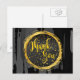 A beautiful gold letter saying thank you on black circle post card is very elegant and classic to thanks your guests.