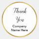 At the top, thank you appears in black script on this white and faux gold sticker. At the bottom, there's display text you can replace with your company's name. The gold look border is an artistic rendering (not foil). You can edit or delete the text as desired.