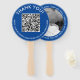 Express gratitude to your guests with our minimalist Thank You Party Hand Fan, featuring a sleek design on both sides. One side showcases your website's QR Code against a sophisticated dark blue background, while the other side offers customisation options for a photo and text. This innovative fan serves as a thoughtful gesture of appreciation while doubling as a promotional tool for your website or event photo archive. Perfect for weddings, baby showers, or any large gathering, it seamlessly integrates personalisation with practicality. Replace the text, photo, and QR code with your own, or opt for your business logo to leave a lasting impression on your guests.