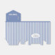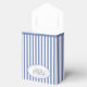 The background is a simple stripes pattern with blue and white vertical stripes for an all-over geometric print. The design is suitable for all occasions, all ages, and all genders. Use these little boxes to wrap small gifts or party favours for birthdays, anniversaries, graduations, showers, and more.