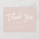 This modern and stylish, blush pink retail or small business postcard features the words "thank you" in trendy, white handwritten script typography. Add your business or company name and website or other info for a thank you your corporate customers will want to show off.