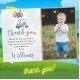 You will so enjoy sending out this charming and unique thank you card - with the golf cart and the blue and gold balloons-- completed with his message and custom script name. "Love" really is the answer. Any design questions or special requests, just send a chat or an email to charmdesignstudio@rcn.com and we'll be delighted to assist.