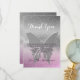 Adorable, elegant, whimsical, dreamy Baby shower thank you card, with butterfly pink purple and silver glitter background.