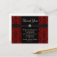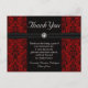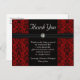 Customizable Thank You Card with elegant, pretty black and red damask print. Thank everyone for their heartfelt gifts and attendance to your special event, graduation or after-celebration. Dark network background with black damask pattern, black ribbon and faux diamond rhinjewel in the centre.