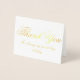 Thank You Note Card in the small 4-inch size is shown in white with a gold foiled print with a custom name sample.