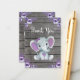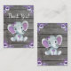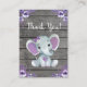 Thank You Card Girl Elephant Shower Purple Rustic