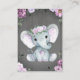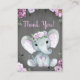 Purple Grey Elephant Thank You card for Birthday, Baby Shower with flowers and wooden background (rustic baby shower)