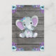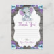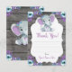 Customisable Floral Wreath Very Cute Watercolor Purple and Teal Flowers Rustic Elephant Thank You card for Birthday, Baby Shower. Add your text, name etc!