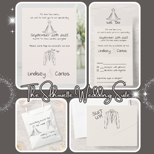 A classic thank you card designed for the modern couple seeking elegance and simplicity. This beautifully crafted card features a clean, sophisticated look with a silhouette of a suit and a wedding dress, capturing the essence of your special day in a timeless design.