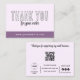 A Simple, stylish custom business logo thank you qr 1code leave us review card design in modern typography feauturing an elegant handwritten script font. All fields can be easily personalised for a unique and professional design to help encourage repeat business and grow customer loyalty.