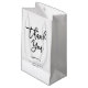 This modern and stylish, black and white retail shopping bag features the words "thank you" in trendy, handwritten script typography. Add your business or company name and website or other info for a bag your corporate customers will want to show off.