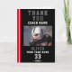 Thank you Coach Red Football Player Team Photo Card. Add coach`s name, player name, team, number and player`s photo. The text is trendy white and grey typography on a black background with red stripe.