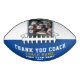 Blue Thank you Coach Team Name and Team Photo Football. The text is trendy white typography on a blue background. Personalise with your coach name, team name and year. You can change any text on the football or erase it. A great gift for a coach! Add a team photo and get the team to sign the non-designed areas of the ball with a fine point permanent marker for a wonderful keepsake.