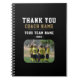 Thank you Coach Team Name Photo notebook. Personalise with your coach name, team name, team photo and year. You can change any text on the notebook or erase it. A great gift and a keepsake for a soccer coach!