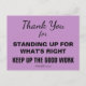 Text: Thank you for standing up for what's right. Keep up the good work. #PeopleOfConscience