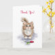 Thank You, cute cat sitting with red rose Card