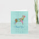 A pretty way to say thank you with this card featuring a dog painted with pink watercolor flowers on a robins egg blue background with lace patterning.