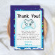 Level up your gratitude in gamer style! 🎮 This fun thank-you card features a bold gaming controller in a vibrant world filled with a “Level Up” cake, confetti, balloons, dragons, aeroplanes, and other playful details. A perfect way to thank guests for making your gaming birthday party truly epic!