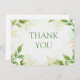 Thank You flat note card is shown in a lovely watercolor floral leaves print. Text colour Green Envelopes included