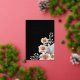 Watercolor floral bouquet on black with silver foil text for thank you.