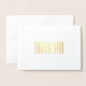 This card is shown in white matte finish card stock paper with a stylish Thank You print in real gold foil.
