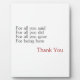 Say thank you to person you love with this plaque. Show gratitude for being there for you, for all they said, did and gave to you. Show love.
