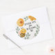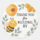 Add a sweet finishing touch to your baby shower favors with this adorable “Thank You for Buzzing By” round sticker. Featuring a cute watercolor bee, soft eucalyptus greenery, a honeycomb accent, and a warm golden hive, this design matches perfectly with bee-themed and Mommy-to-Bee baby showers.