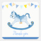 Boy Baby Shower thank you stickers in colours of blue and yellow. Perfect for baby shower parties to thank your guests. Other matching items blue hobby horse designs available. Rocking horse watercolor painting by and design by Sarah Trett for www.mylittleeden.com