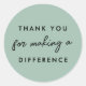 A simple "Thank you for Making a Difference" quote art design in modern and handwritten script typography on a dusky muted pastel sage green background. The perfect way to say thanks to that special someone, here are some individuals you could share your gratitude with: teacher, mentor, coach, instructor, advisor, doctor, nurse, midwife, coworker, colleague, family relative, friend, neighbour, nanny, customer, client, business manager, wedding host organiser, carer, social worker, housekeeper, cleaner, gardener, hairdresser, babysitter, dog walker, pet sitter, mailman, charity fundraiser, accountant, PA, secretary, surgeon, paramedic, physio, counsellor, therapist, and so much more!