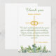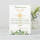 This personalised thank you for marrying us card for a pastor or other officiant has watercolor eucalyptus leaves and flowers, a gold cross and rings, and message: We feel much gratitude for your role in officiating our wedding. Your words, prayers and faith in God made our day even more special.