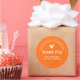 Express your gratitude with this charming thank-you sticker, featuring the phrase 'Thank you for supporting my small business' in a casual, friendly Chelsea Market font. Set on a pumpkin orange background, the text is accented by a delicate heart illustration and a subtle ring of dotted details, giving it a warm and welcoming feel. Perfect for adding a personal touch to packages, this sticker is a beautiful way to show appreciation for your customers' support.