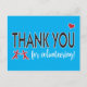 Thank you for volunteering card to show appreciation for your organisation's volunteer staff. Helpful for volunteer appreciation as a special way to thank those who help. A red heart at the top and two people icons at bottom, on an aqua background. If your nonprofit organisation depends on volunteers, don't forget to acknowledge them!