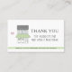 Text reads "THANK YOU for supporting my small business" with an illustration of a shop with a bright green awning and a pink heart. You can edit the text over the window with the name of your store or first name or leave it blank. The back has an editable discount with a coupon code. Green border. Add into your packaging to let your customers know you appreciate their business. Great for online sellers.
