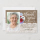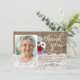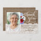 a burlap and lace effect thank you card decorated with watercolor red white and blue flowers.