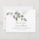 Green watercolors green leaves with gold accents. Customisable thank you card template.