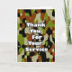 Thank You for Your Service Greeting card. Camouflage background. Great card to use to send a message of appreciation to a person in the Military. "Thank You for Your Service"