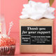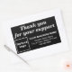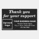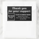 Customisable sticker with message Thank you for your support. Sticker to appreciate the support of your customers or clients. You can also use it as marketing material to advertise your business and to promote your brand name or build brand name awareness. Designs are white texts on black background and rectangle shape. To customise this sticker, upload your business logo, type your business or company name, address and phone number. After uploading logo and typing texts, please check the appearance. If the appearance is pleasing to you, you can place your order now. If you need to resize and move the logo and texts to fit on this sticker, please change in the design tool. You can also make other changes according to the appearance that you prefer in the design tool such as changing the background colour, font colour and font style.