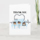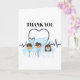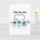 A graphic design of three doctors (two males and one female) wearing white coats and medical masks are framed by a heart shaped stethoscope and a heart ECG line above which are the words, thank you. The inside has your own personalize message to convey your appreciation to the medical team that saved your; a friends or a family members lives.