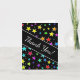 This fun, multicolored thank-you card design features a pattern of star shapes of various sizes and coloured a variety of colours on a black background. The front also features the message "Thank You!", along with a personalised message of gratitude on the inside. It could be used to offer thanks to somebody who has done something special.