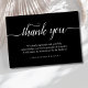 Minimalist and clean traditional thank you card for a memorial service featuring white text against a black background, tasteful script fonts, and the option of adding a photo of your loved one on the reverse side. This classic, simple and elegant design is black and white with script font details.