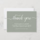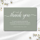 Minimalist and clean traditional thank you card for a memorial service featuring white text against a sage green background, tasteful script fonts, and the option of adding a photo of your loved one on the reverse side.