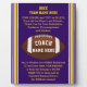 Thank You Gifts for Football Coaches Purple, Gold Plaque