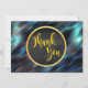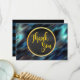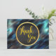 A clean thank you invitation card written in gold font on black grey striped lines will be a classic appearance .
