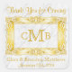 Thank You Gold Classic Monogram Frame White Marble Square Sticker
