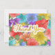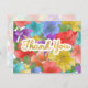 Faux Gold foil Handwritten Script Thank you on a fun, bright and multicolor watercolor flowers painted by Suki’s. Large flowers fill the entire design creating an abstract medley of colours, yet if viewed closely each flower shows its shape.