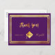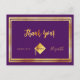 A thank you card for the graduate. A girly purple background colour and a faux gold frame. On front a hand lettered style script and the text: Thank You! Graduate and a graduation cap, hat.
