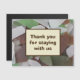 House rentals are becoming more and more popular. This is an inexpensive way to set your vacation rental apart from your competition. Place this thank you magnet on the refrigerator of your vacation home to remind your guests that you are happy they are staying with you. The background features a beautiful photograph of a collection of sea glass in earth tone colours of brown, green, and white. "Thank you for staying with us" can easily and quickly be customised to suit your needs.