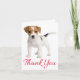 This fun canine card features an image of a baby Jack Russell Terrier puppy dog highlighted against a crisp white background with a Thank You greeting printed in a pinkish red script font.