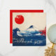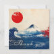 This thank you card from the Japonesque Harmony with Fuji collection is a bold and refined expression of appreciation, blending traditional Japanese motifs with modern elegance. The front showcases a dramatic and visually striking scene: a stylised wave inspired by classic ukiyo-e art crashes beneath a snow-capped Mount Fuji, set against a soft parchment-like background. A vivid red sun in the upper corner echoes the Japanese flag, while splashes of crimson to the right add dynamic contrast and emotional intensity. The words “Thank you” are written in flowing cursive along the base of the wave, adding a graceful touch to the powerful composition. The entire front is customisable, making it easy to tailor to your message and style.