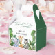 Send your guests home with a little jungle magic! These adorable favour boxes feature a charming elephant, giraffe, and zebra surrounded by tropical greenery, complete with a heartfelt "Thank You" message. Perfect for small treats, candies, or keepsakes to make your baby shower truly unforgettable!